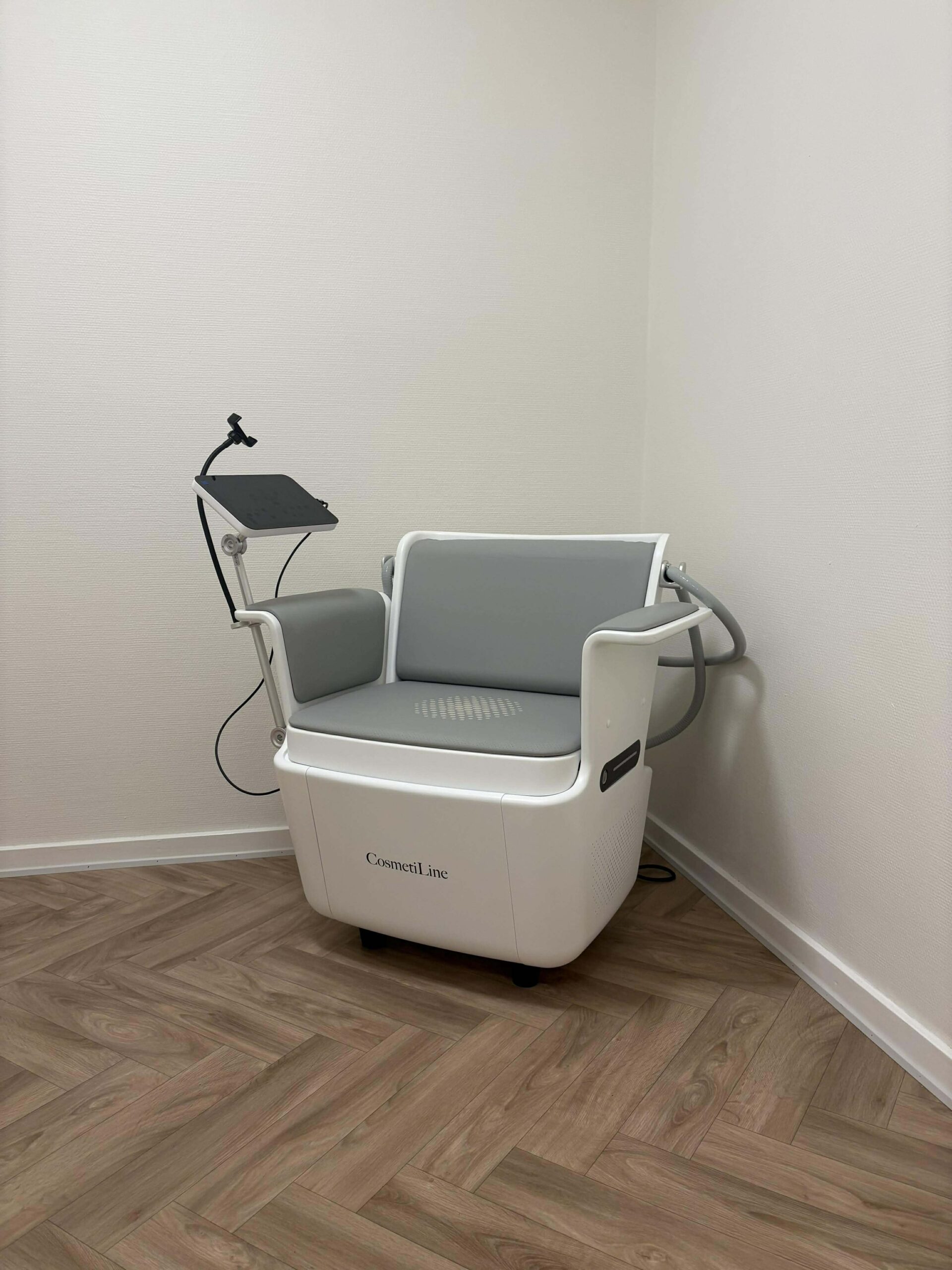 Pelvic Chair er en banebrydende og ikke-invasiv behandling, der hjælper med at styrke bækkenbundens muskler ved hjælp af avanceret elektromagnetisk teknologi. Behandlingen er udviklet med udgangspunkt i fysioterapiens principper og er særligt målrettet personer, som oplever svag muskulatur i underlivet, ufrivillig vandladning eller nedsat kontrol over blæren. Med Pelvic Chair stimuleres bækkenbundsmusklerne gennem tusindvis af supramaksimale sammentrækninger, som er langt stærkere end almindelige knibeøvelser og har vist sig at give markant forbedring i muskelstyrke og funktion.